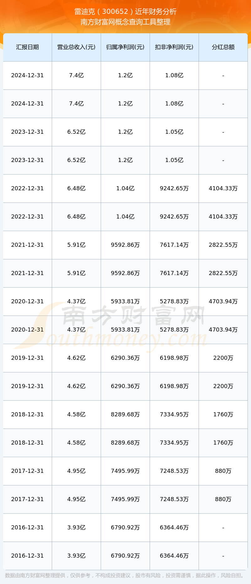 雷迪克公司2024年實(shí)現(xiàn)營收7.4億元,凈利潤1.2億元,毛利率31.61%。