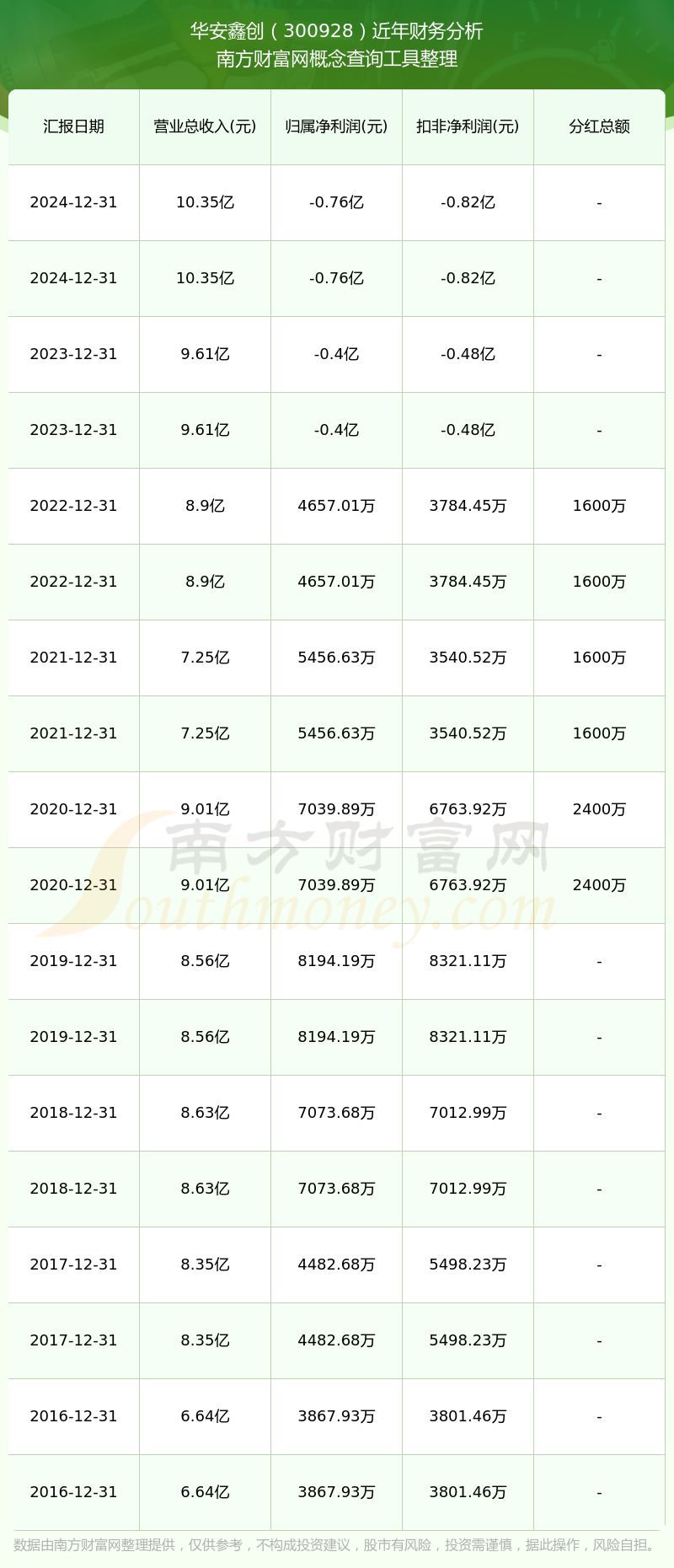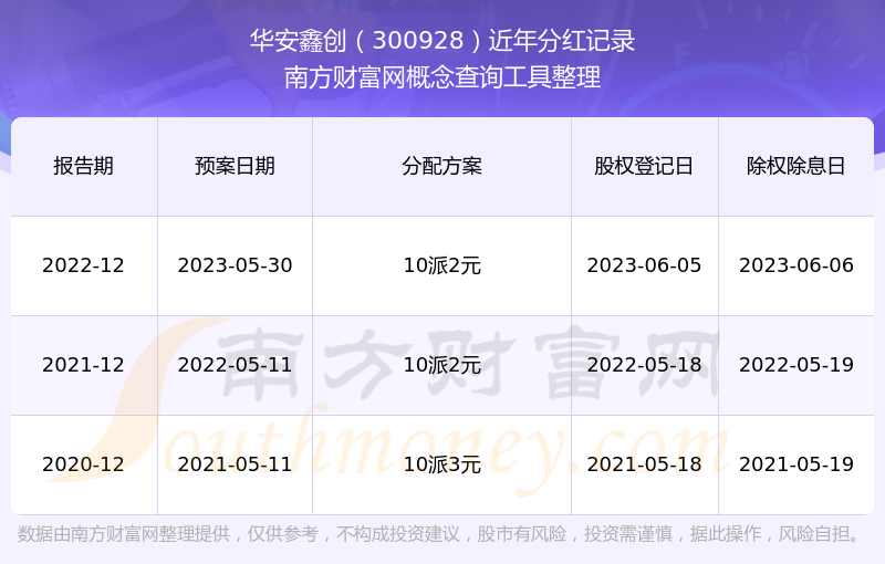近年華安鑫創(chuàng)分紅派息情況如下表所示: