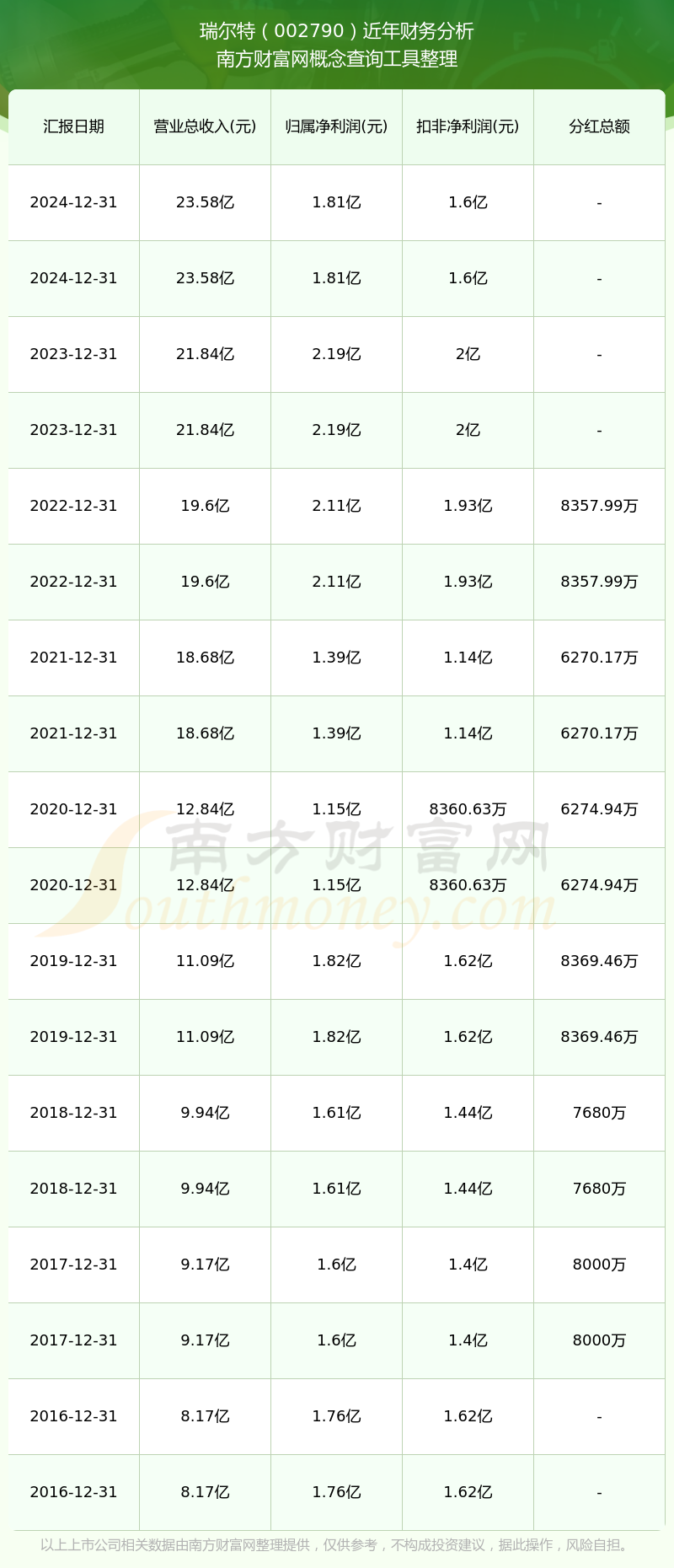 瑞爾特最新一次公布的分紅方案為10派2元。本次權(quán)益分派股權(quán)登記日為2023年5月31日,除權(quán)除息日為2023年6月1日,派息日為2023年6月1日。