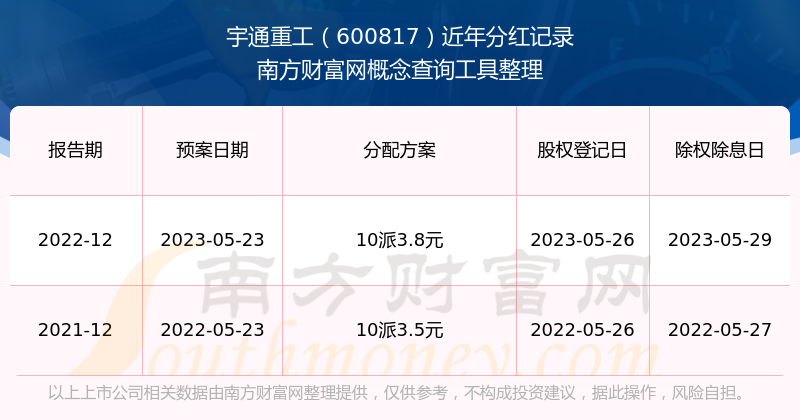 宇通重工最新一次公布的分紅方案為10派3.8元。本次權(quán)益分派股權(quán)登記日為2023年5月26日,除權(quán)除息日為2023年5月29日,派息日為2023年5月29日。