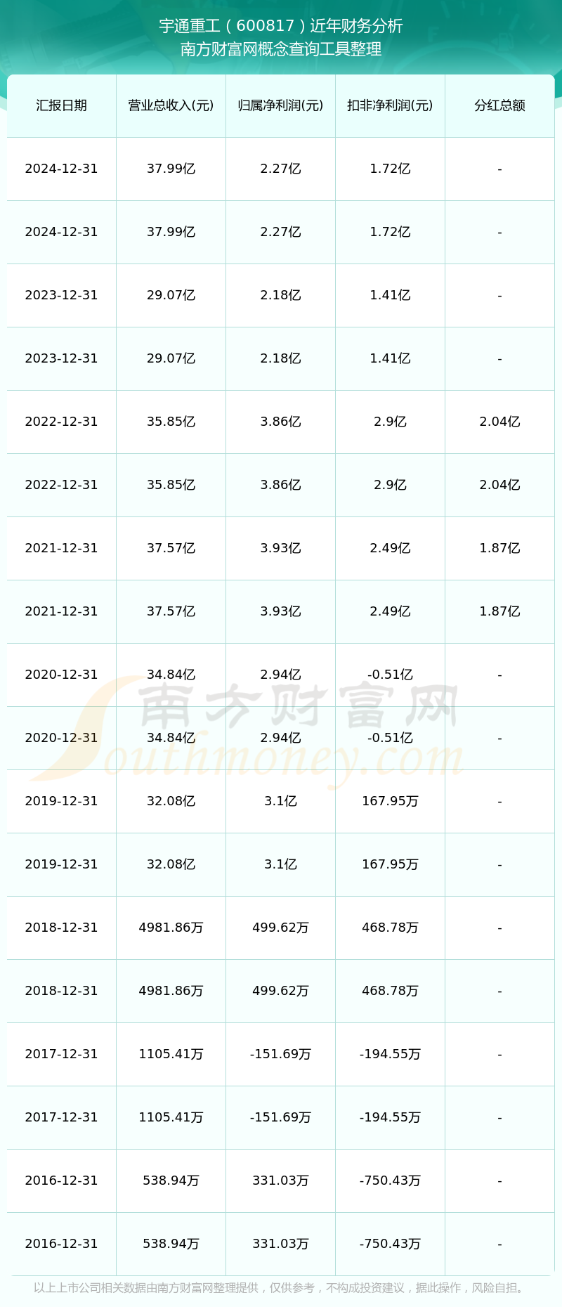 近年宇通重工分紅派息情況如下表所示: