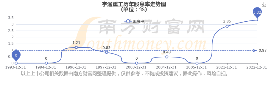 宇通重工歷年股息率走勢(shì)如下圖: