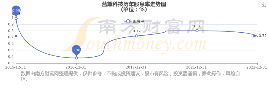 藍黛科技?xì)v年分紅派息情況如下表所示:
