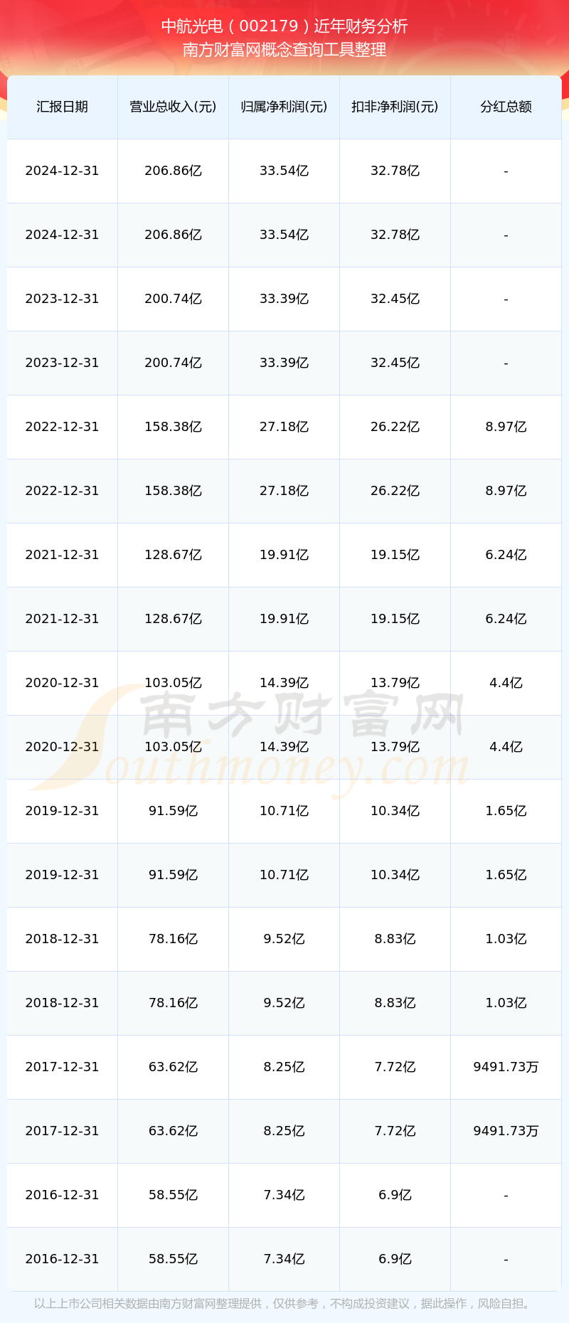 2024年中航光電總營收206.86億,同比增長3.04%;凈利潤33.54億,同比增長0.45%;銷售毛利率36.61%。