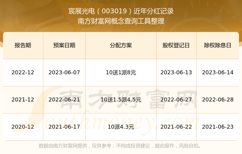 宸展光電最新一次公布的分紅方案:10送1派8元。