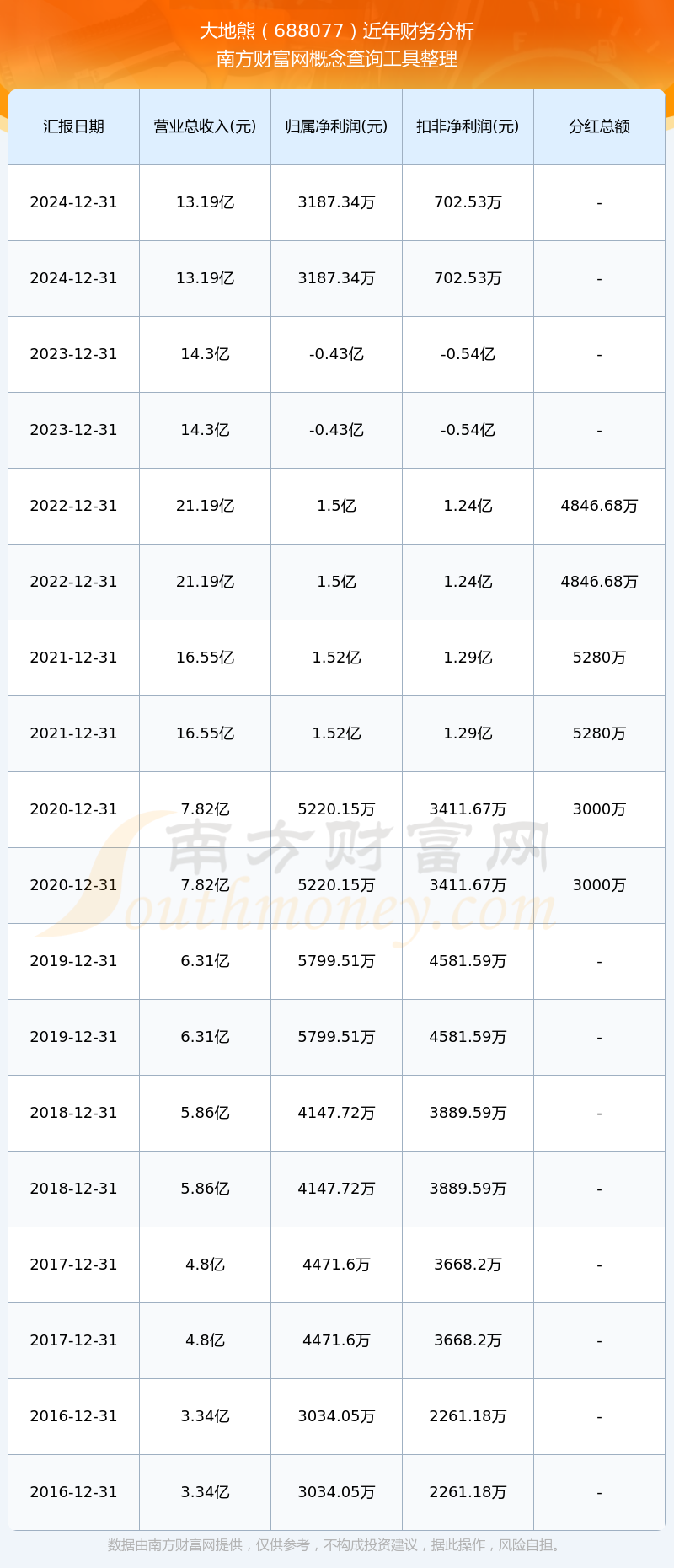 2024年報(bào)顯示,大地熊實(shí)現(xiàn)營(yíng)收13.19億,同比增長(zhǎng)-7.79%;凈利潤(rùn)3187.34萬(wàn),同比增長(zhǎng)174.46%;毛利率15.8%。