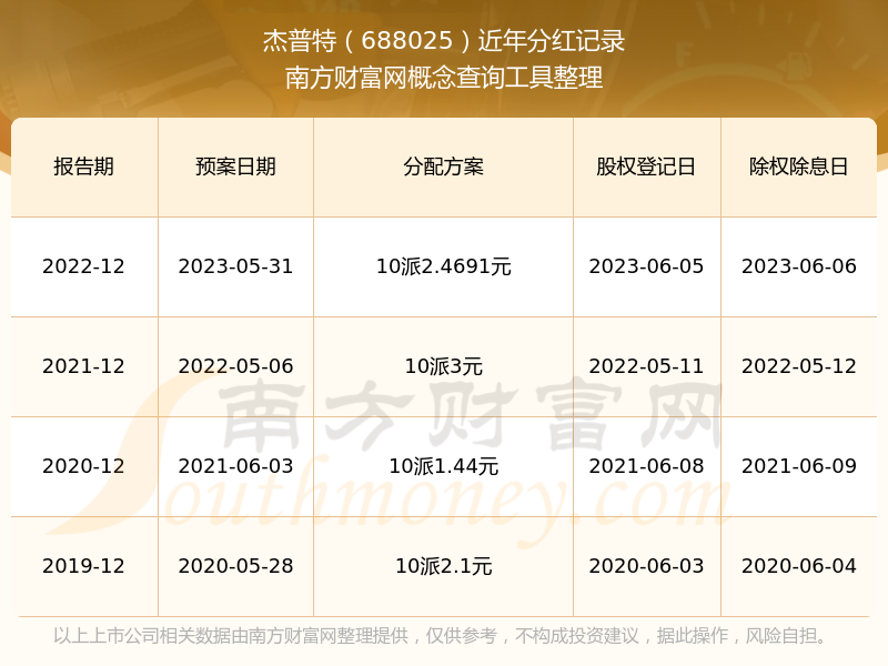 近年杰普特分紅派息情況如下表所示: