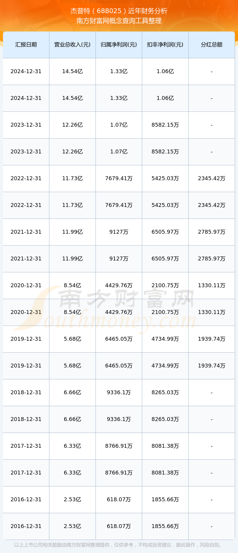 2024年報(bào)顯示,杰普特實(shí)現(xiàn)營收14.54億,同比增長18.62%;凈利潤1.33億,同比增長23.53%;毛利率37.69%。