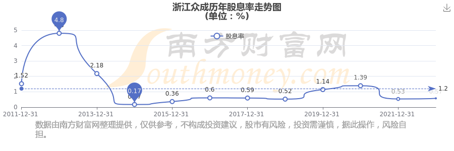 浙江眾成歷年股息率走勢如下圖: