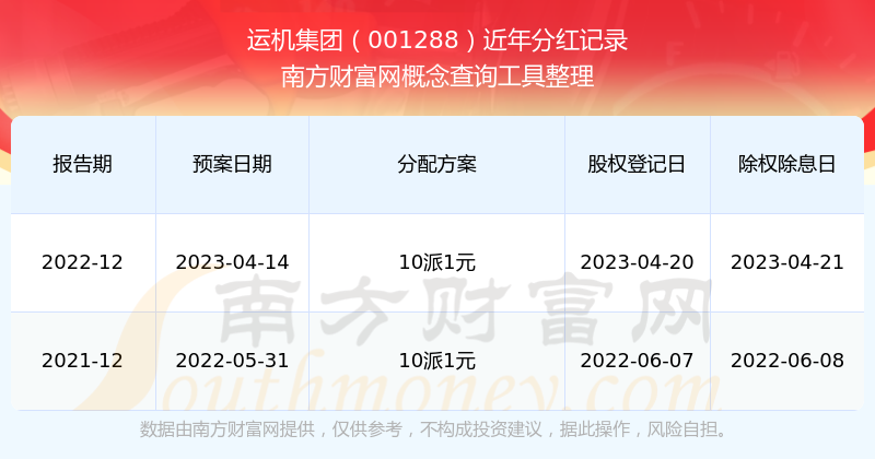 運(yùn)機(jī)集團(tuán)最新一次公布的分紅方案為10派1元。本次權(quán)益分派股權(quán)登記日為2023年4月20日,除權(quán)除息日為2023年4月21日,派息日為2023年4月21日。