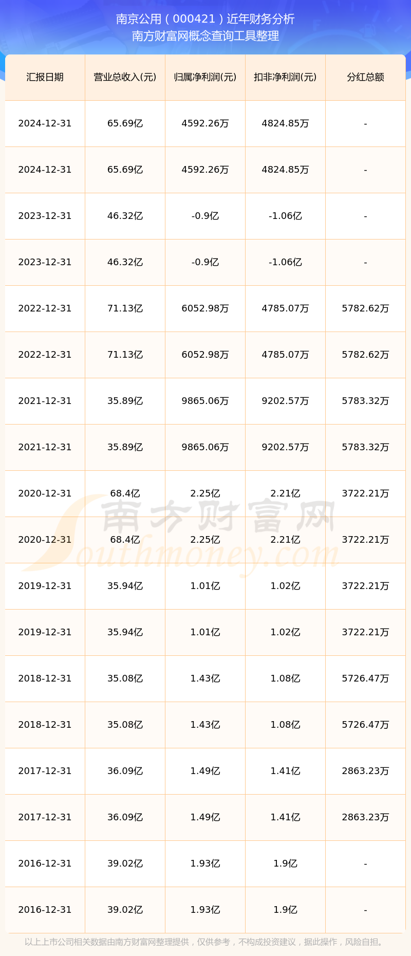 南京公用歷年分紅派息情況如下表所示: