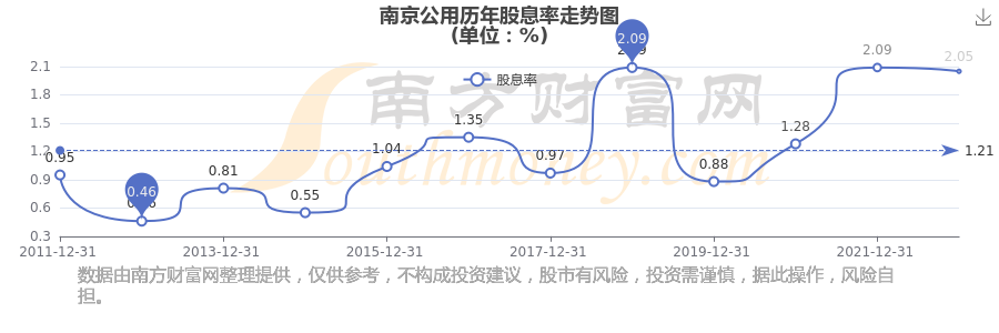 南京公用歷年股息率走勢(shì)如下圖: