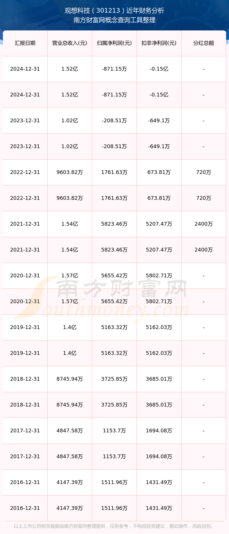 近年觀想科技分紅派息情況如下表所示: