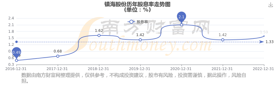 鎮(zhèn)海股份歷年股息率走勢(shì)如下圖: