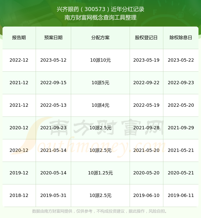 興齊眼藥最新一次公布的分紅方案:10派10元。