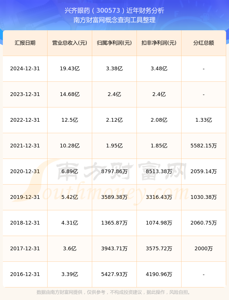興齊眼藥公司2024年實現(xiàn)營收19.43億元,凈利潤3.38億元,毛利率78.33%。