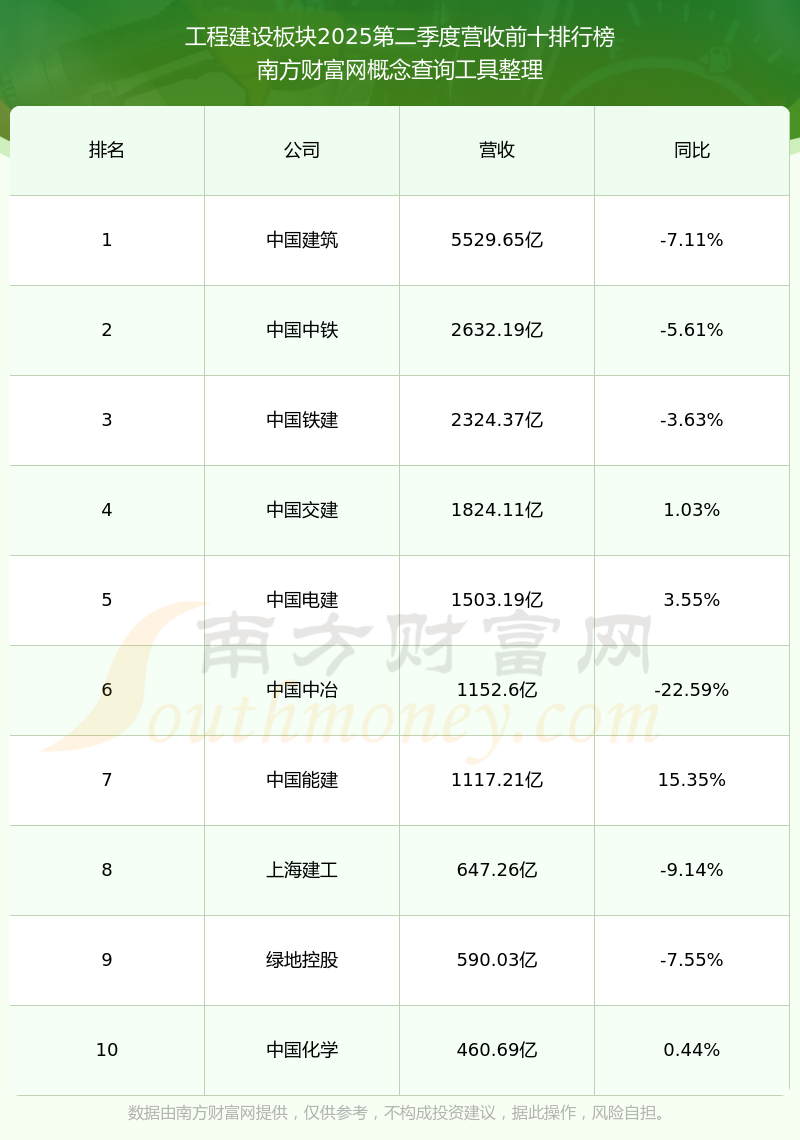 按照南方財富網(wǎng)概念查詢工具統(tǒng)計,該股所屬板塊為工程建設板塊,該板塊共有140只股票,東湖高新2025第二季度營收在該板塊中排名為第80名,該板塊2025第二季度營收排名前十的股票如下表: