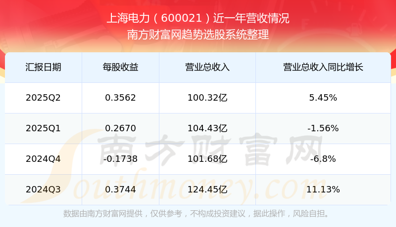 上海電力披露了2025年第二季度財(cái)報(bào)。報(bào)告顯示,上海電力2025年第二季度實(shí)現(xiàn)營(yíng)收100.32億元,同比5.45%;歸母凈利潤(rùn)10.8億元,同比55.8%。