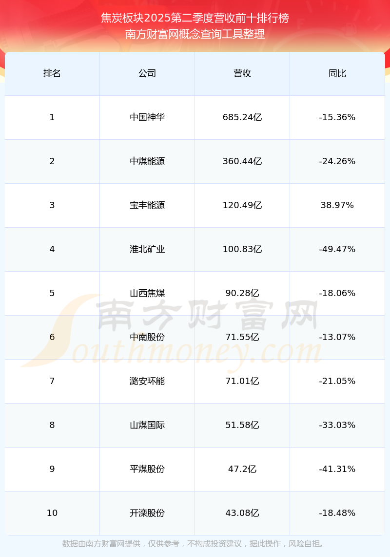按照南方財富網(wǎng)概念查詢工具統(tǒng)計,該股所屬板塊為焦炭板塊,該板塊共有22只股票,寶泰隆2025第二季度營收在該板塊中排名為第21名,該板塊2025第二季度營收排名前十的股票如下表: