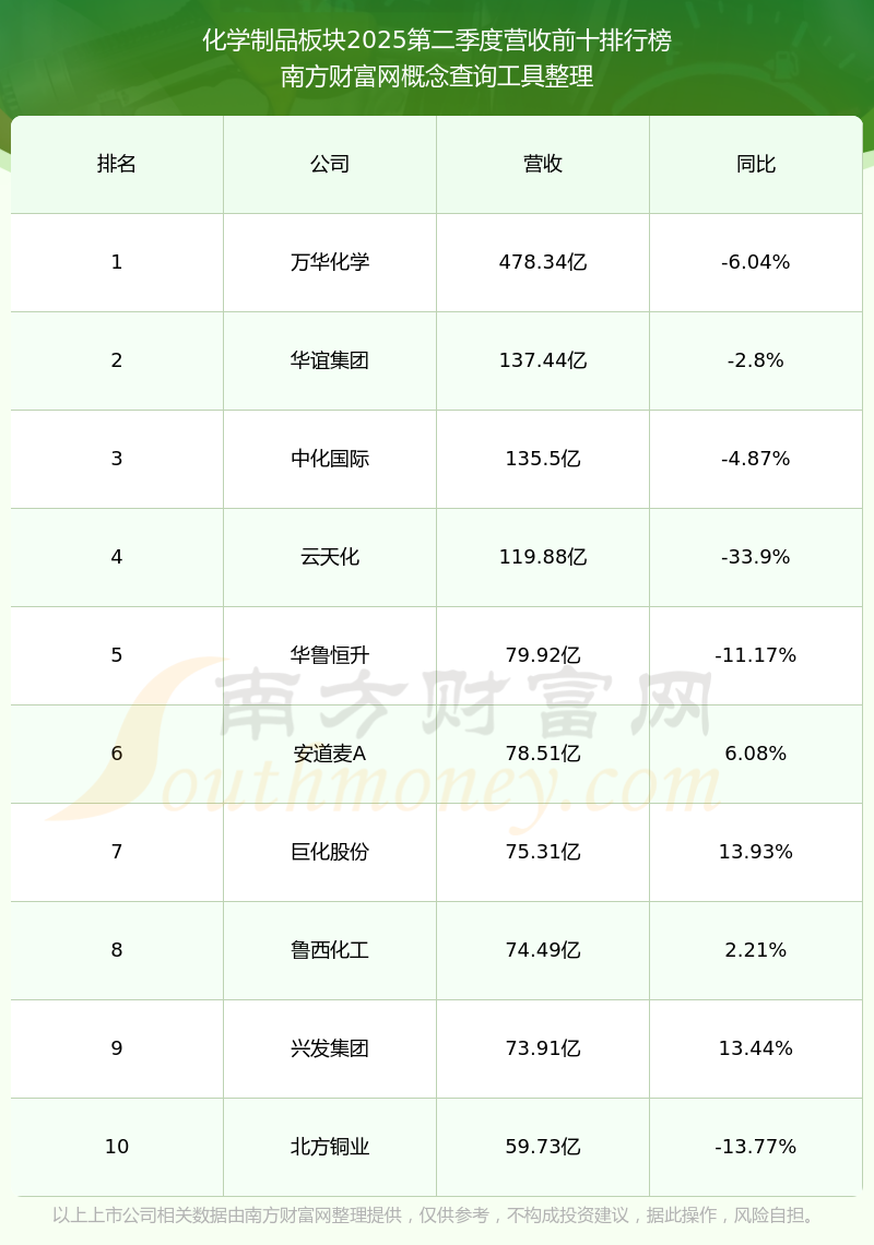 按照南方財富網(wǎng)概念查詢工具統(tǒng)計,該股所屬板塊為化學制品板塊,該板塊共有227只股票,雅運股份2025第二季度營收在該板塊中排名為第174名,該板塊2025第二季度營收排名前十的股票如下表: