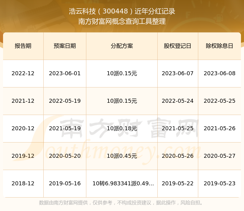 一、浩云科技(300448)股票分紅記錄