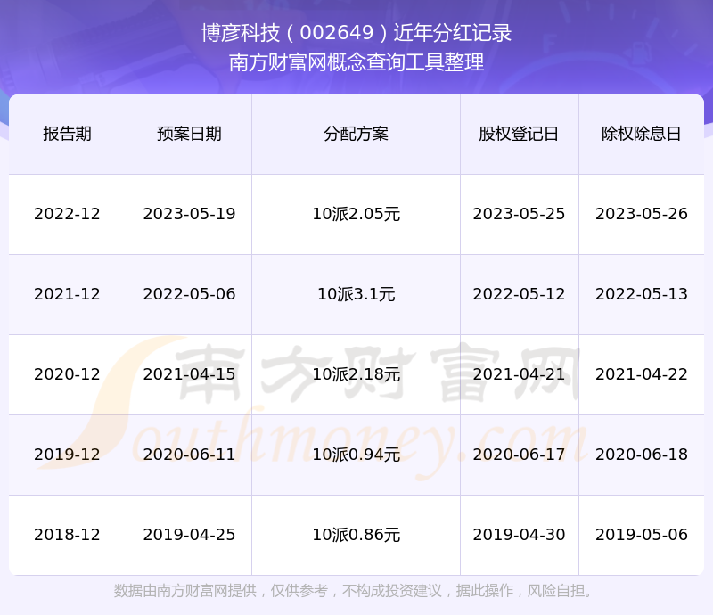 博彥科技最新一次公布的分紅方案:10派2.05元。