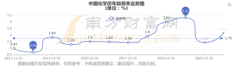 近年中國化學(xué)年度股息率走勢(shì)如下圖: