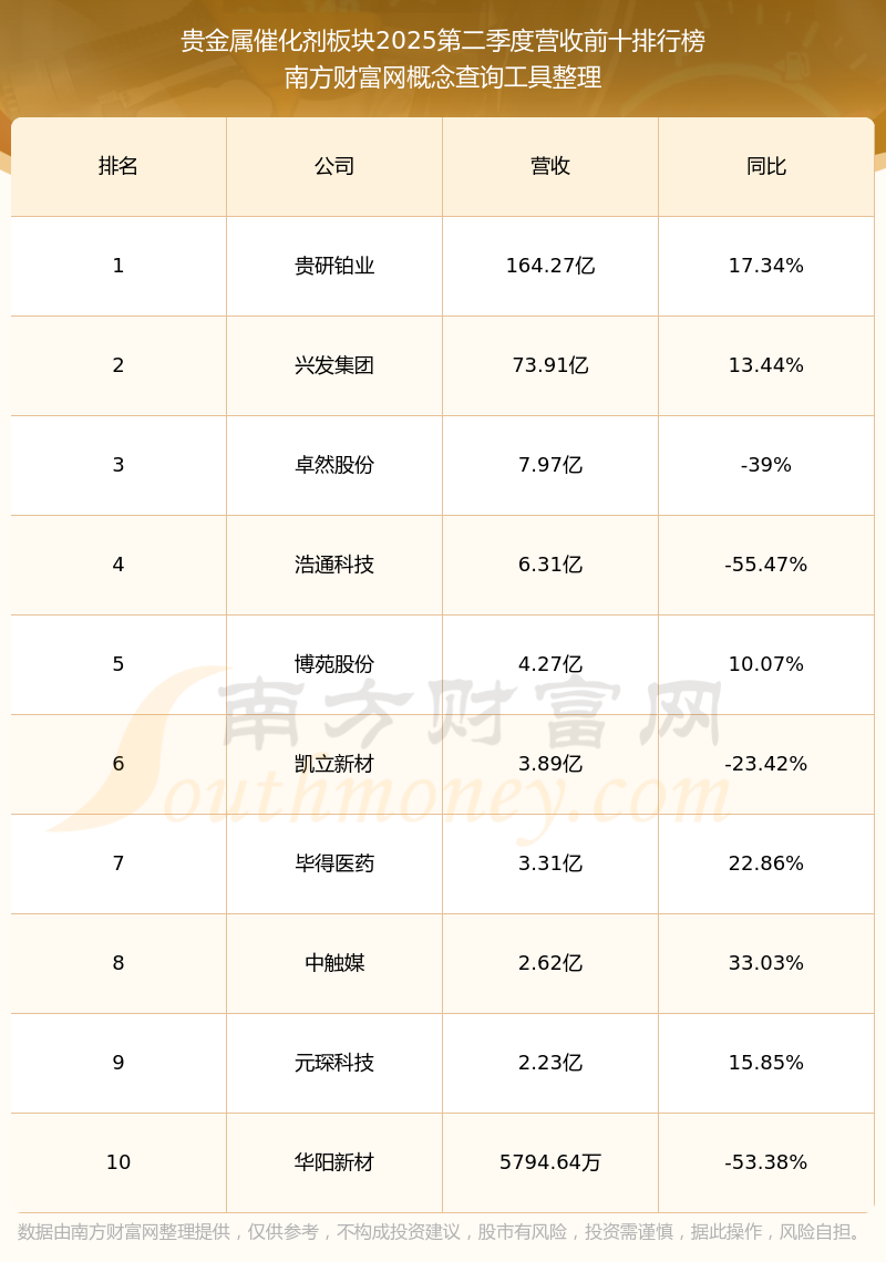 按照南方財富網(wǎng)概念查詢工具統(tǒng)計,該股所屬板塊為貴金屬催化劑板塊,該板塊共有10只股票,凱立新材2025第二季度營收在該板塊中排名為第6名,該板塊2025第二季度營收排名前十的股票如下表: