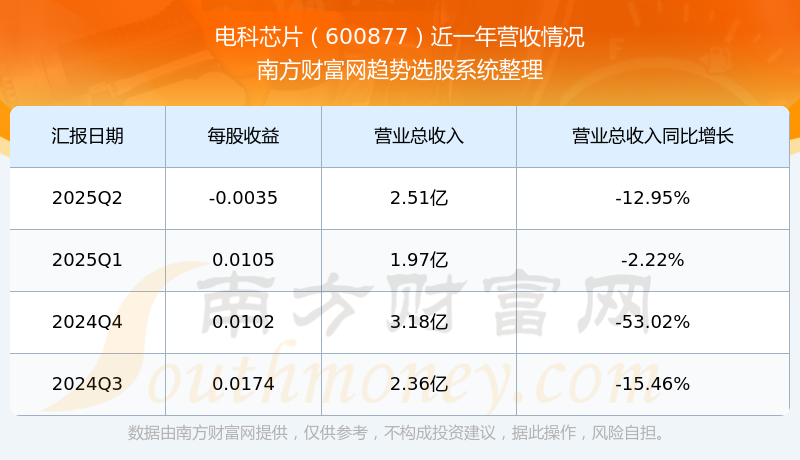 電科芯片發(fā)布2025年第二季度財(cái)報(bào)。實(shí)現(xiàn)總營收2.51億元,同比增長-12.95%;扣非凈利潤同比增長-212.24%至-1244.36萬元。