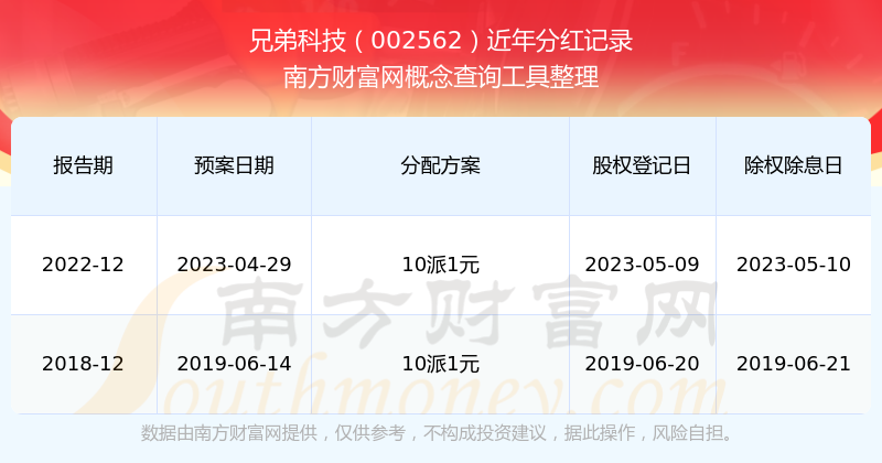 兄弟科技最新一次公布的分紅方案:10派1元。