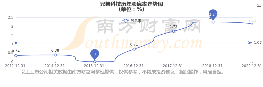 近年兄弟科技年度股息率走勢(shì)如下圖: