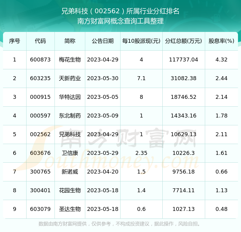 按照南方財(cái)富網(wǎng)趨勢(shì)選股系統(tǒng)統(tǒng)計(jì),兄弟科技所屬行業(yè)為醫(yī)藥化工行業(yè),醫(yī)藥化工行業(yè)分紅排名情況如下表: