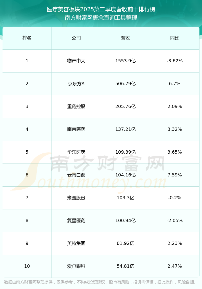 按照南方財富網(wǎng)概念查詢工具統(tǒng)計,該股所屬板塊為醫(yī)療美容板塊,該板塊共有106只股票,康德萊2025第二季度營收在該板塊中排名為第106名,該板塊2025第二季度營收排名前十的股票如下表: