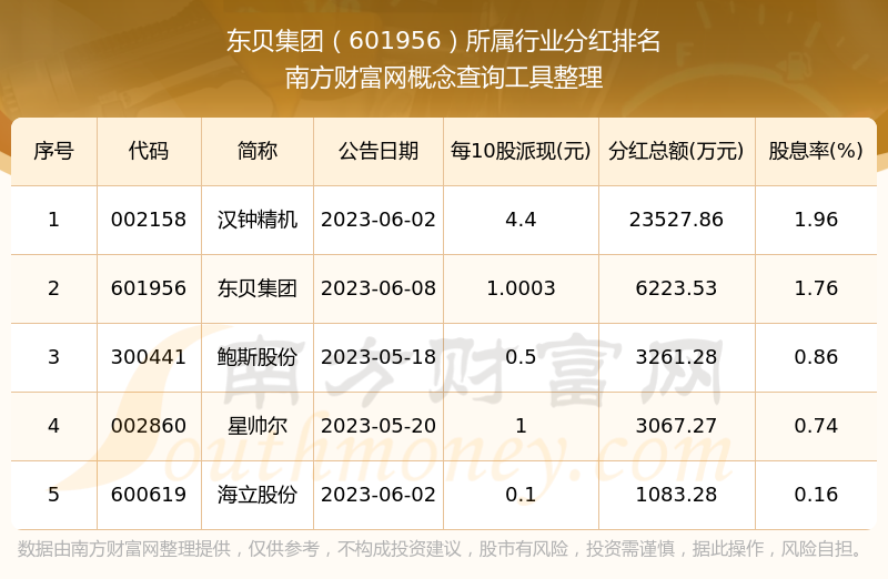 二、東貝集團(tuán)601956行業(yè)分紅排名
