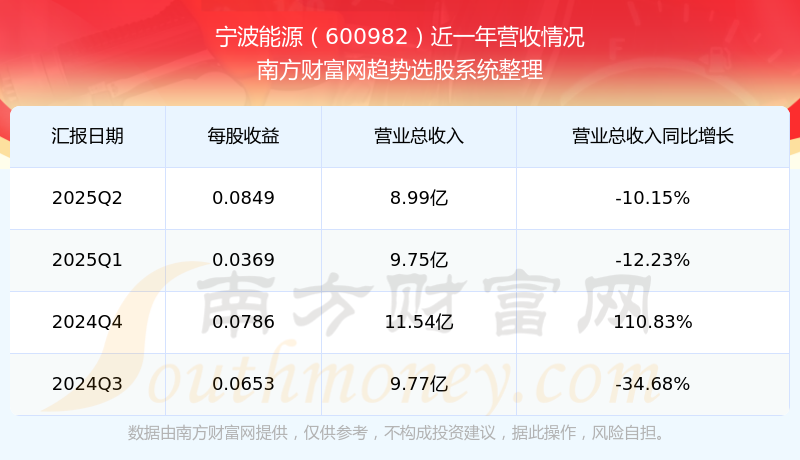 寧波能源股票近一年營收情況如下表: