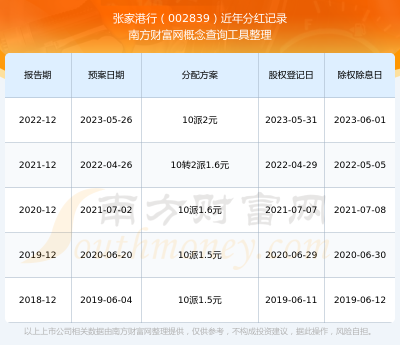 張家港行最新一次公布的分紅方案為10派2元。本次權(quán)益分派股權(quán)登記日為2023年5月31日,除權(quán)除息日為2023年6月1日,派息日為2023年6月1日。