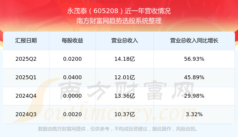 財(cái)報(bào)顯示,2025年第二季度永茂泰營收14.18億元,同比增長(zhǎng)56.93%,凈利潤(rùn)524.87萬元,同比增長(zhǎng)-79.22%。