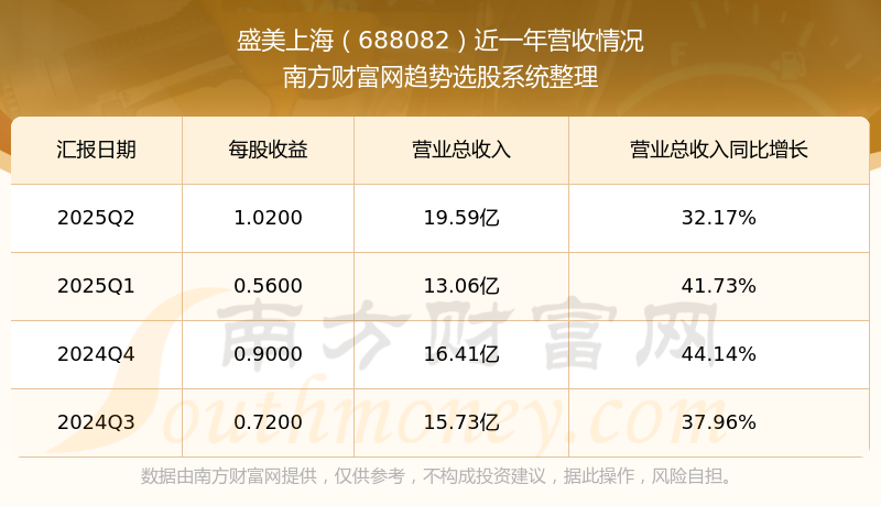 盛美上海2025年第二季度財報顯示,公司主營收入19.59億元,同比32.17%;歸母凈利潤4.49億元,同比23.81%;扣非凈利潤4.26億元,同比21.71%;