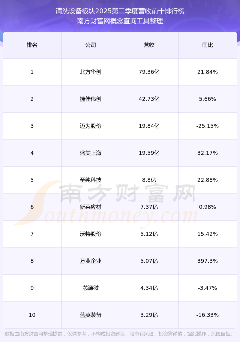 按照南方財富網(wǎng)概念查詢工具統(tǒng)計,該股所屬板塊為清洗設備板塊,該板塊共有15只股票,盛美上海2025第二季度營收在該板塊中排名為第4名,該板塊2025第二季度營收排名前十的股票如下表: