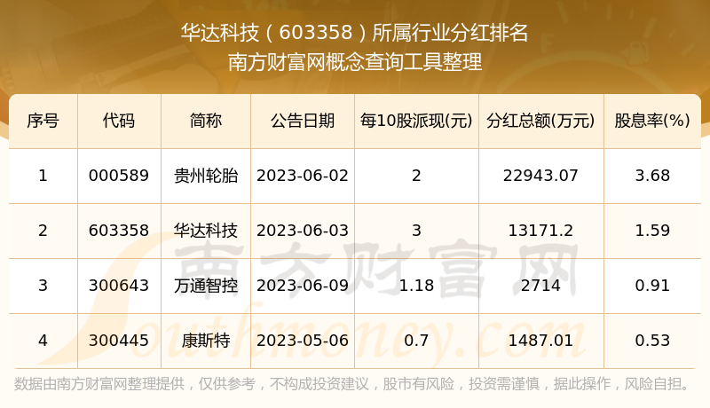 按照南方財富網(wǎng)趨勢選股系統(tǒng)統(tǒng)計,華達科技所屬行業(yè)為汽車零部件行業(yè),汽車零部件行業(yè)分紅排名情況如下表: