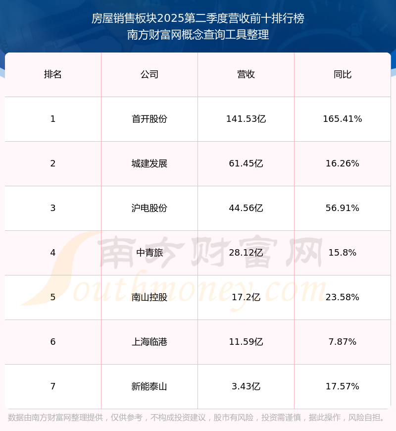 按照南方財富網(wǎng)概念查詢工具統(tǒng)計,該股所屬板塊為房屋銷售板塊,該板塊共有7只股票,臥龍地產(chǎn)2025第二季度營收在該板塊中排名為第7名,該板塊2025第二季度營收排名前十的股票如下表: