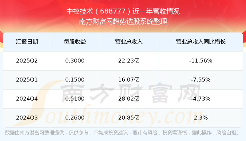 中控技術(shù)(688777)披露2025年第二季度報(bào)告,報(bào)告期實(shí)現(xiàn)營(yíng)收22.23億元,同比-11.56%;歸母凈利潤(rùn)2.34億元,同比-36.96%;扣非凈利潤(rùn)2.12億元,同比-40.19%;基本每股收益0.3元。