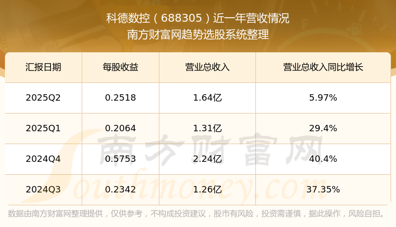 財(cái)報(bào)顯示,2025年第二季度科德數(shù)控營收1.64億元,同比增長5.97%,凈利潤2795.44萬元,同比增長-16.25%。