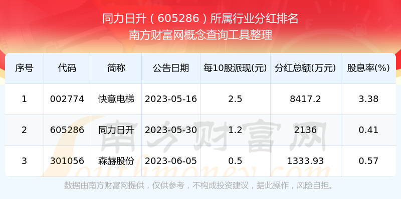 同力日升最新一次公布的分紅方案:10派1.2元。