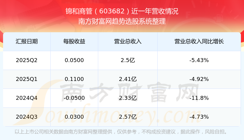 于2025年第二季度,錦和商管披露了其業(yè)績表現(xiàn),其中主營業(yè)務(wù)收入2.5億元,相較于去年同期-5.43%。此外,公司歸屬于母公司的凈利潤為2155.77萬元,同比增長了113.58%。在扣除所有非經(jīng)常性損益后,凈利潤346.66萬元,同比增長303.18%。