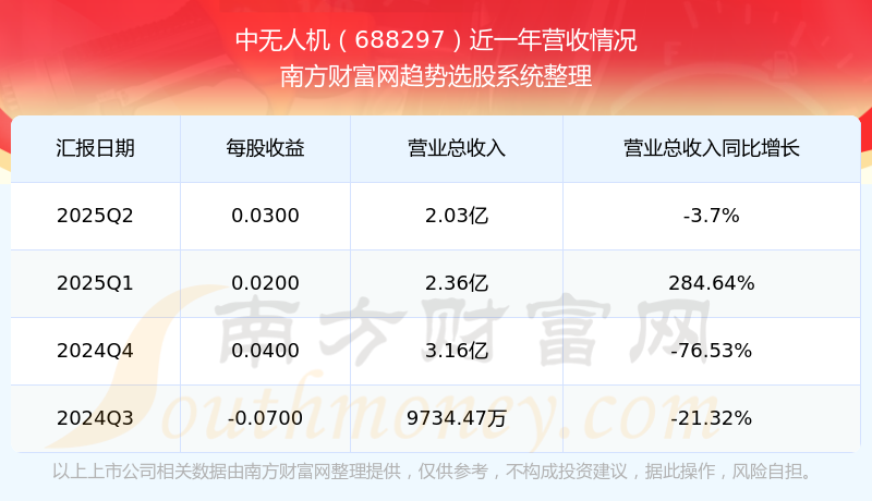 中無人機2025年第二季度顯示,公司主營收入2.03億元,同比-3.7%;歸母凈利潤1492.82萬元,同比230.98%;扣非凈利潤650.66萬元,同比142.94%。