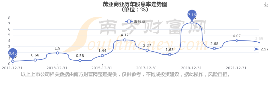 近年茂業(yè)商業(yè)年度股息率走勢如下圖: