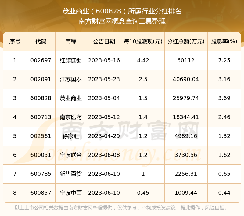 二、茂業(yè)商業(yè)600828行業(yè)分紅排名