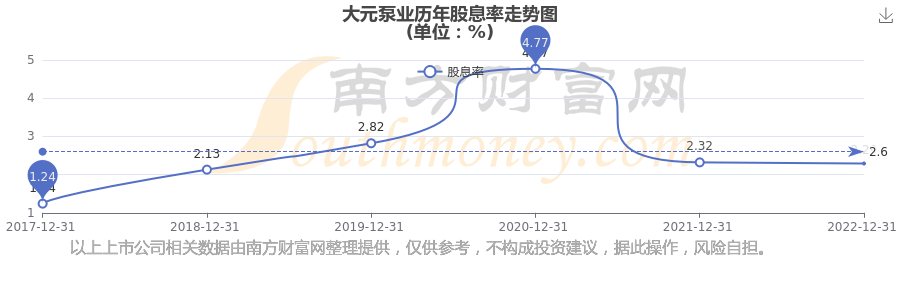 近年大元泵業(yè)年度股息率走勢(shì)如下圖: