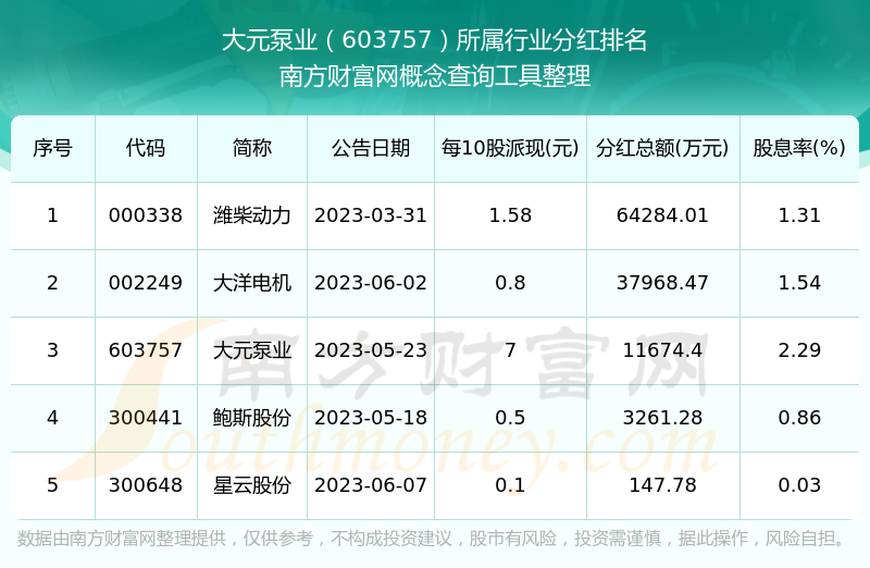 二、大元泵業(yè)603757行業(yè)分紅排名